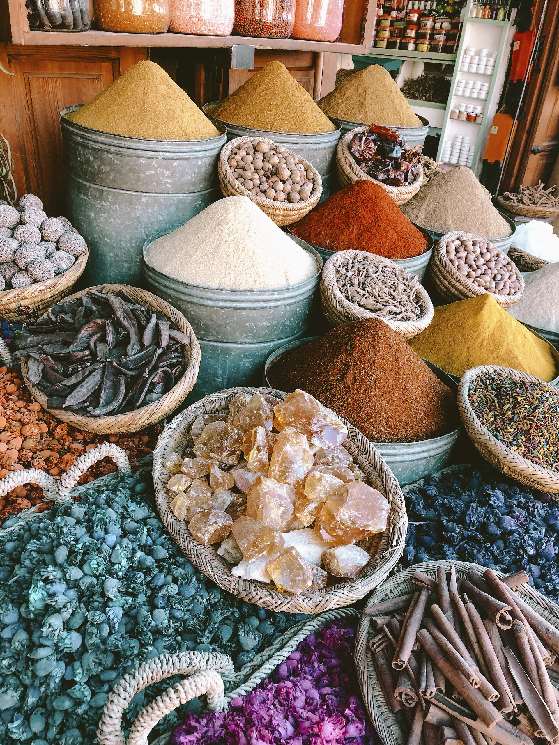 Das Nationalgericht Marokkos schlechthin ist Tajine, ein köstlicher Eintopf aus Fleisch und Gemüse. Der Name bezeichnet dabei nicht nur das Gericht, sondern auch die Art der Zubereitung. Der traditionelle Eintopf wird in einem spitz zulaufenden Tontopf vorbereitet und über längere Zeit geschmort. Die Rezepte reichen von unterschiedlichen Fleisch- bis zu Gemüse- oder Obstvariationen. Deshalb ist es nicht verwunderlich, dass Sie bei Ihrer Reise nach Marokko, das gleiche Gericht in unzähligen Variationen vorfinden werden. Gut zu wissen: Eine gute Tajine erkennt man daran, dass die Zubereitung 45-60 min dauert. In einigen Restaurants wird sogar daraufhin gewiesen, damit sich die Kunden nicht beschweren, wo das Essen bleibe. Serviert wird das Gericht im Unterteil der Tanjine, so kann das Essen noch am Platz vor sich hin bruzeln und ist garantiert warm!