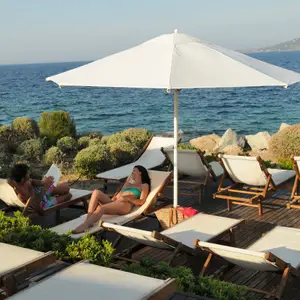 Je länger Sie sich in der Sonne aufhalten, desto vorsichtiger müssen Sie sein. Neben Sonnenschäden können auch Überhitzung, Sonnenstich und Dehydrierung den Urlaub verderben, wenn man den ganzen Tag ungeschützt am Strand liegt – besonders, wenn Sie dazu noch Alkohol konsumieren. Vergessen Sie nicht, regelmäßig Pausen im Schatten zu machen und trinken Sie genügend Wasser. Versuchen Sie einfach, es nicht zu übertreiben.