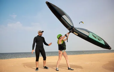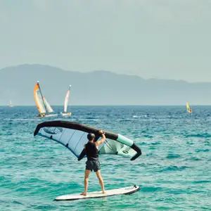 Wingfoil ist ein innovativer Wassersport, der das Gefühl des Kitesurfens und des Windsurfens miteinander verbindet. Er wird mit einem Brett mit einem Foil, mit dem man sich über das Wasser erheben kann, und einem leichten Flügel (Wing), den man in der Hand hält, um den Wind einzufangen, praktiziert. Diese einzigartige Mischung bietet ein völlig neues Freiheitsgefühl mit einem flüssigen und mühelosen Gleiten. Dank seiner Wendigkeit und seiner intuitiven Handhabung zieht das Wingfoilen sowohl diejenigen an, die den Nervenkitzel lieben, als auch diejenigen, die eine neue Erfahrung auf dem Wasser suchen.